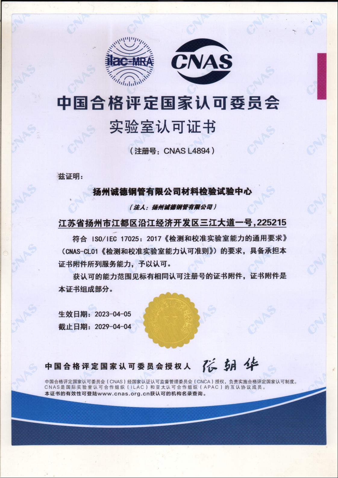 CNAS實(shí)驗(yàn)室認(rèn)可證書