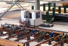 公司擁有10套無損檢測設備,自主開發設計大口徑渦流超聲波一體化檢測設備,采用自動上下料系統,鋼管原地旋轉,探頭檢測裝置采用了多重跟蹤系統界面,接觸穩定可靠。對大口徑管材從縱向、橫向及測厚等進行全方位檢測,使產品質量得到很大提高。